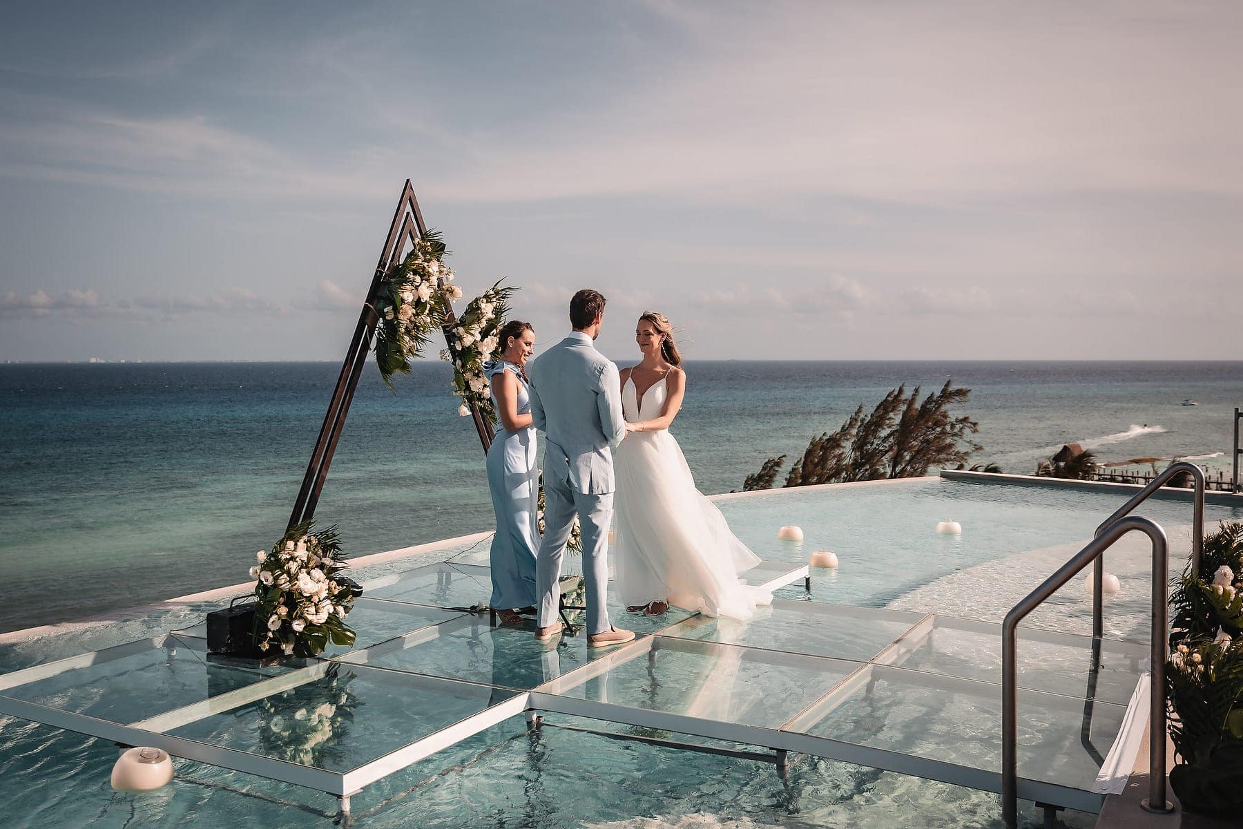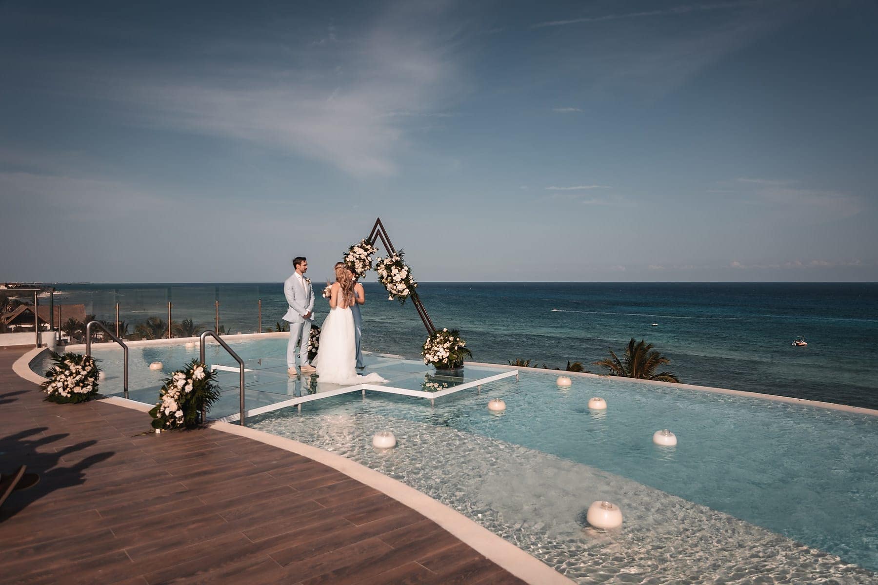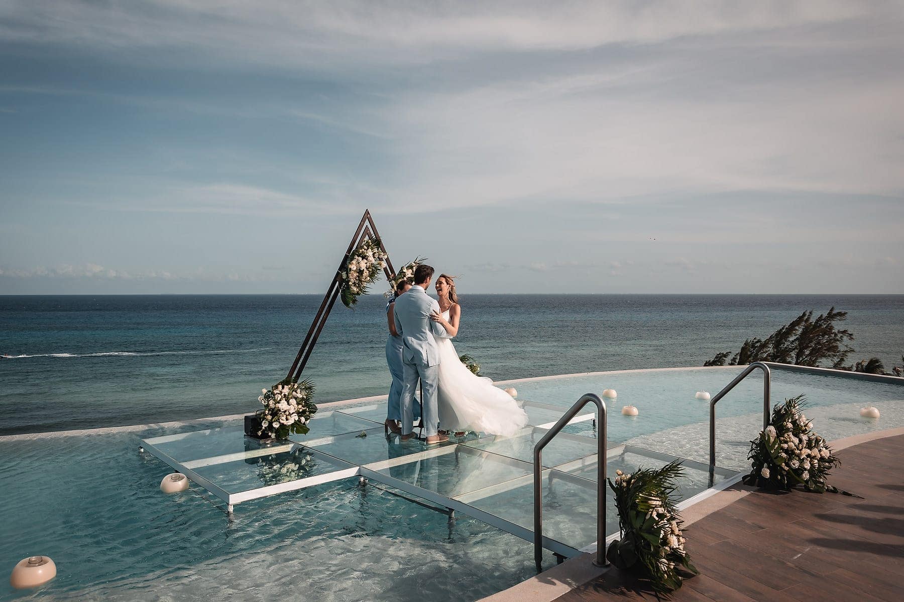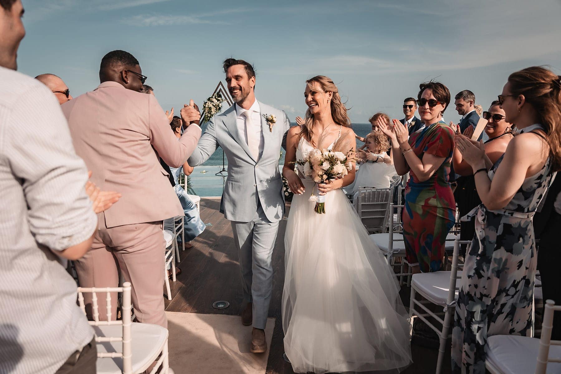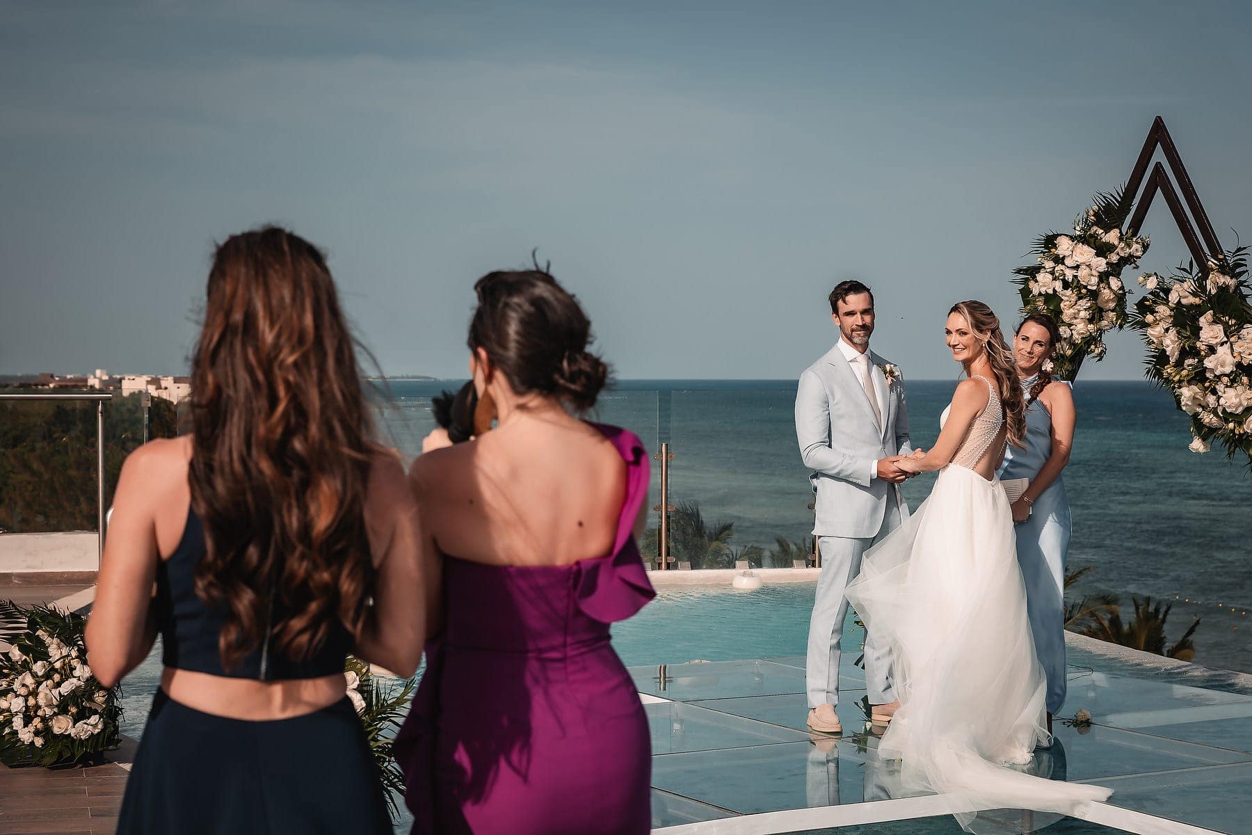 From the moment Cara arrived in her stunning gown, the atmosphere was filled with romance and anticipation. The sun reflecting on the Caribbean waters, the stylish architecture, and the infinity pool terrace created a truly spectacular stage for the ceremony.