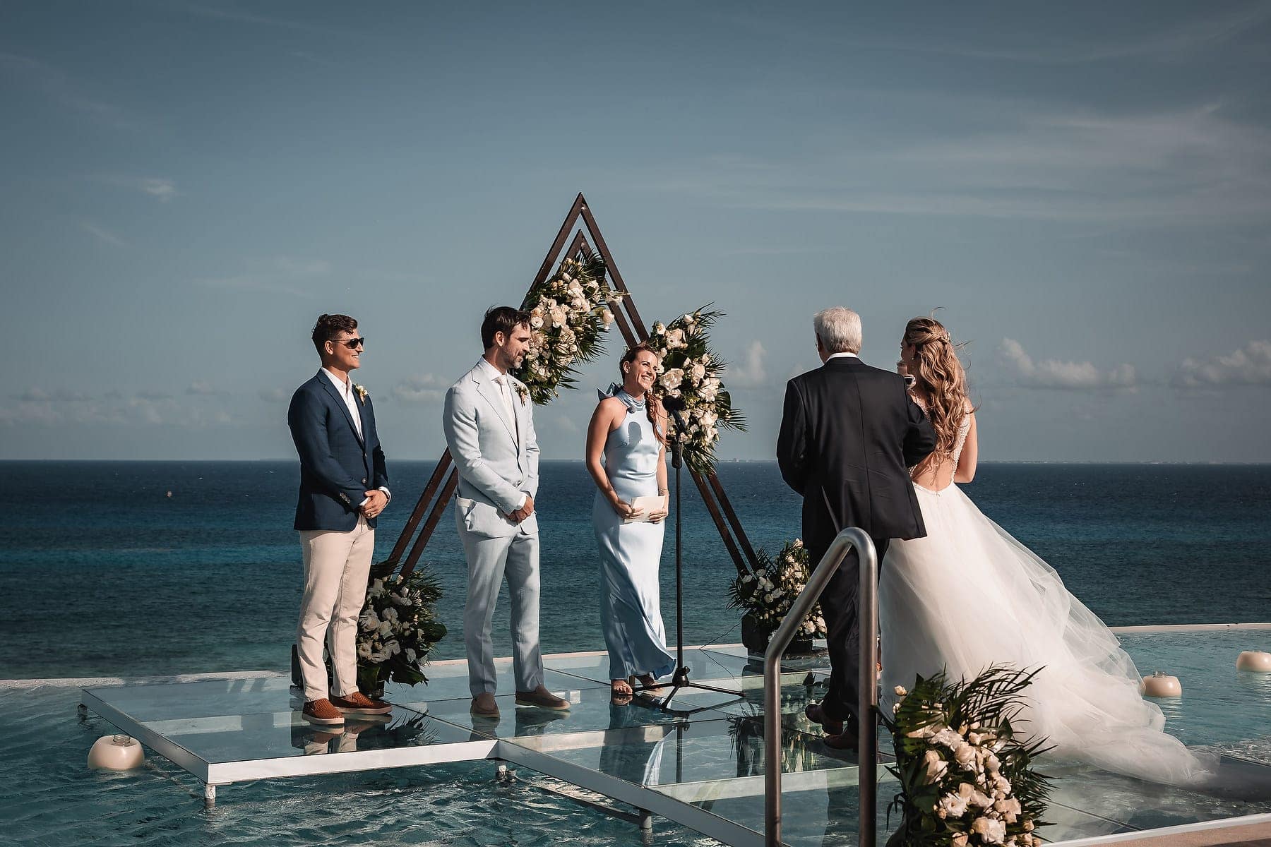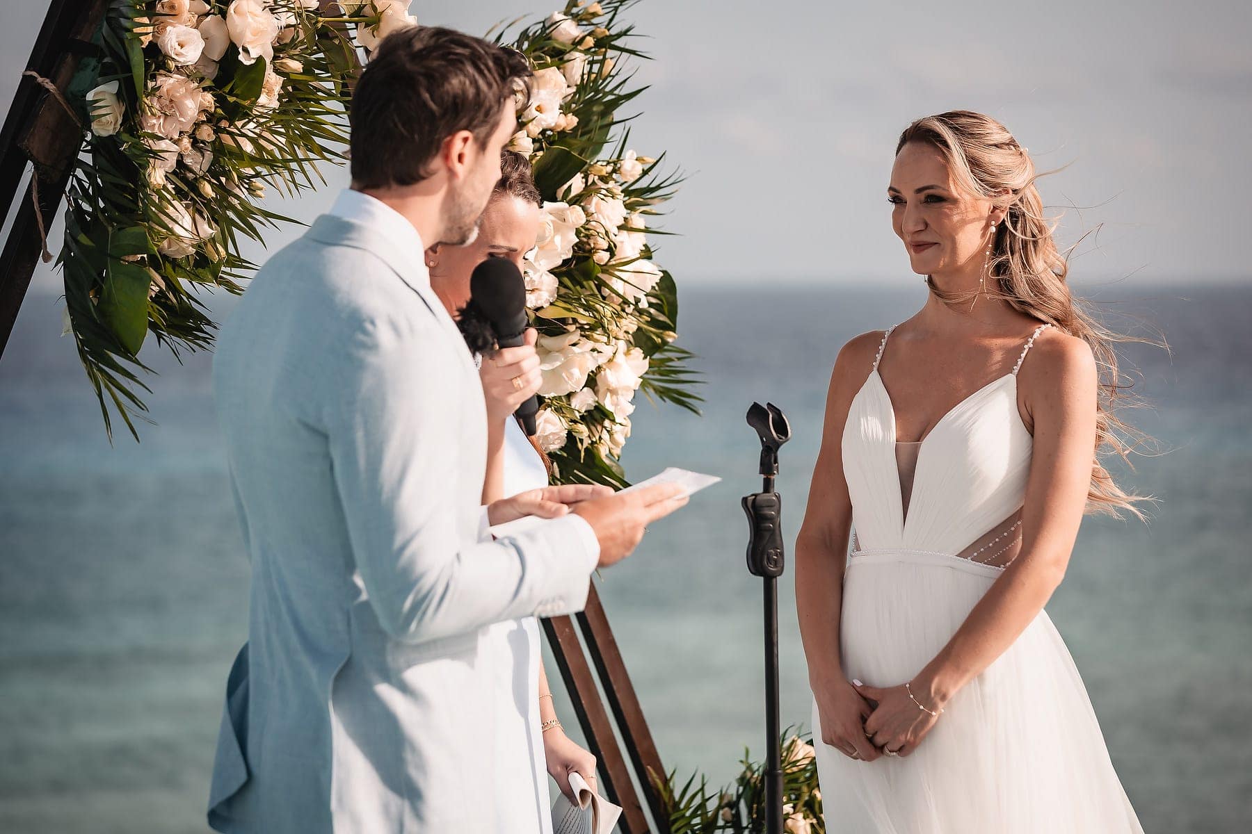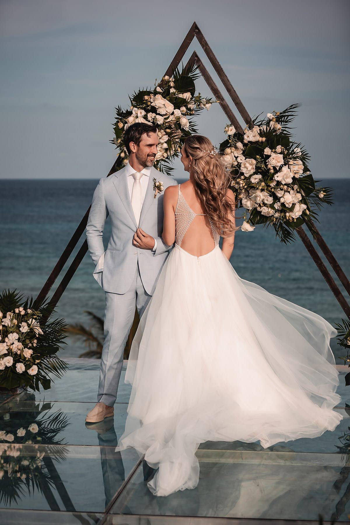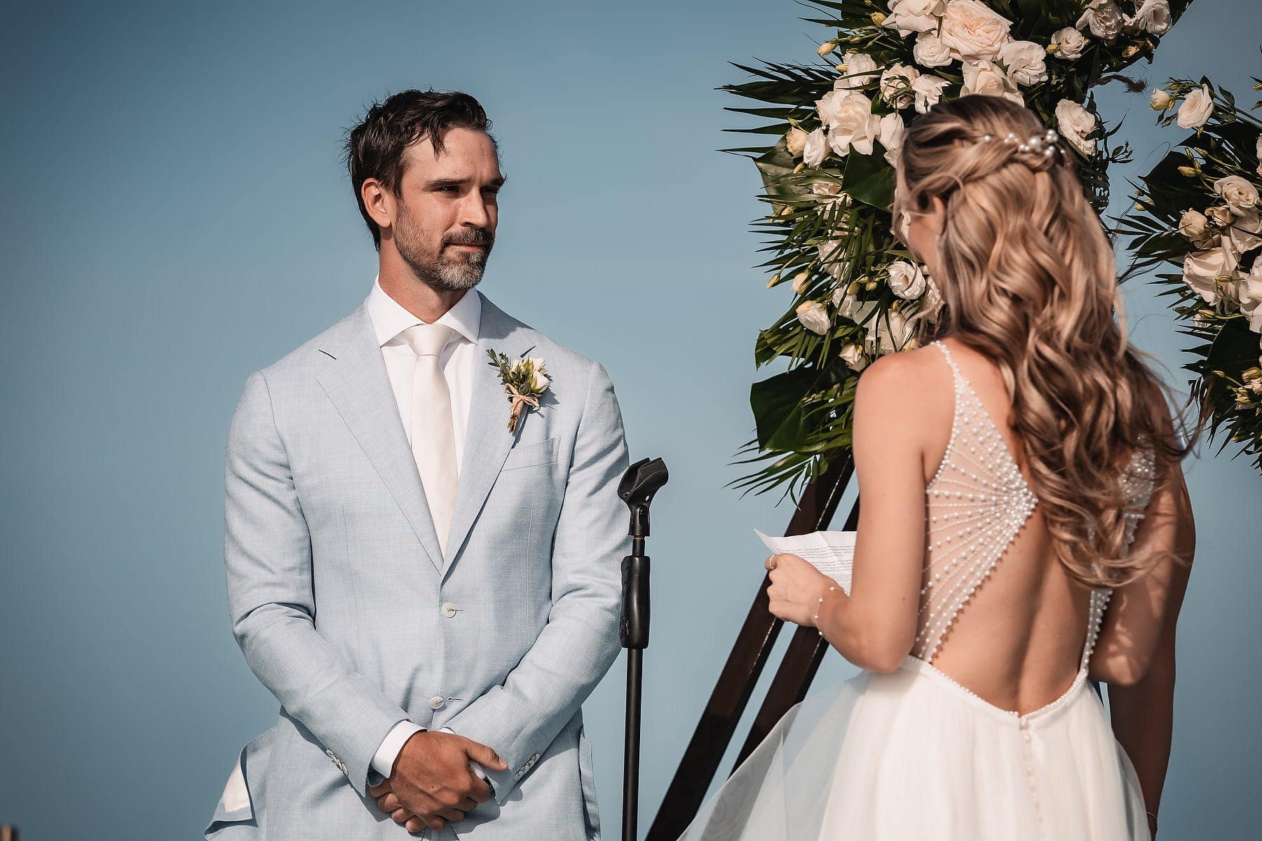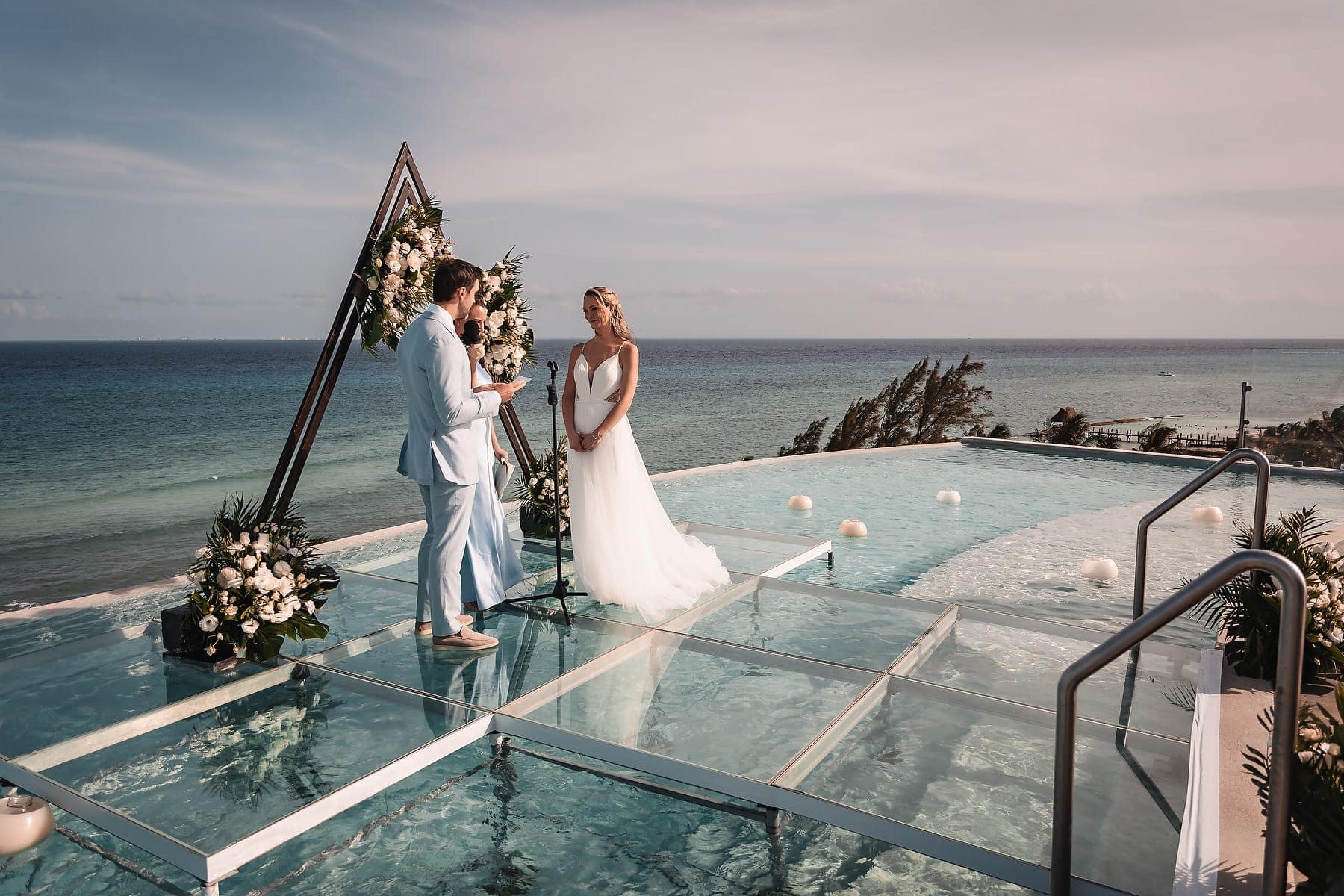 From the moment Cara arrived in her stunning gown, the atmosphere was filled with romance and anticipation. The sun reflecting on the Caribbean waters, the stylish architecture, and the infinity pool terrace created a truly spectacular stage for the ceremony.