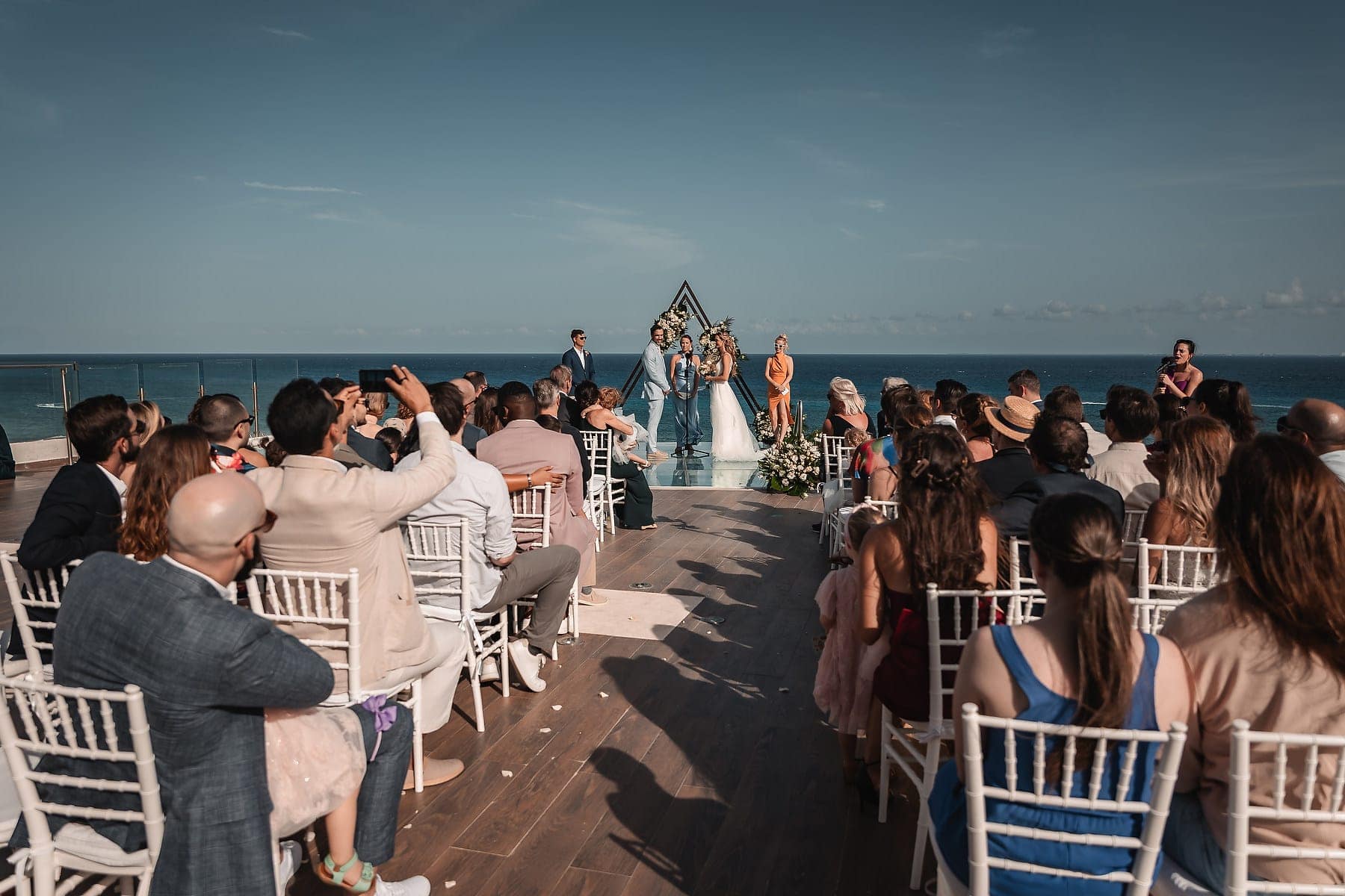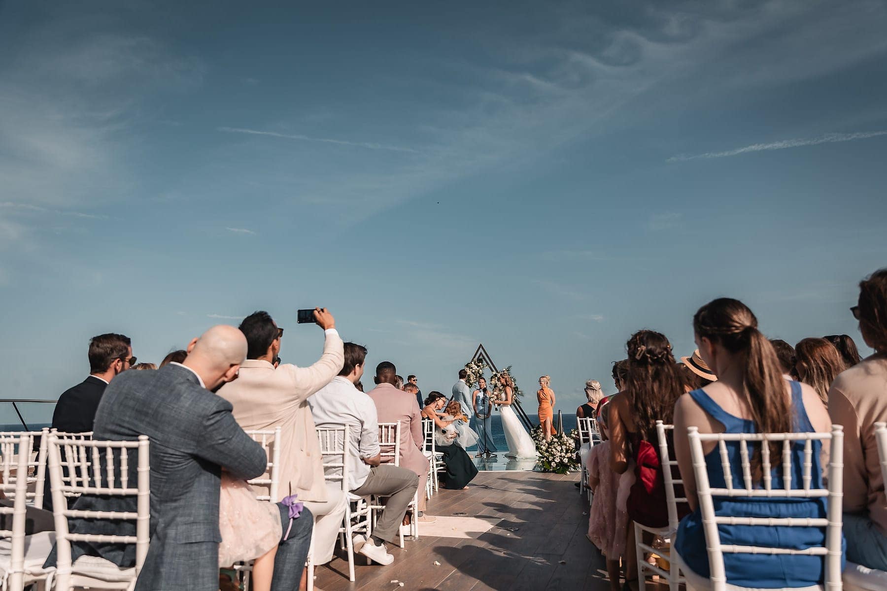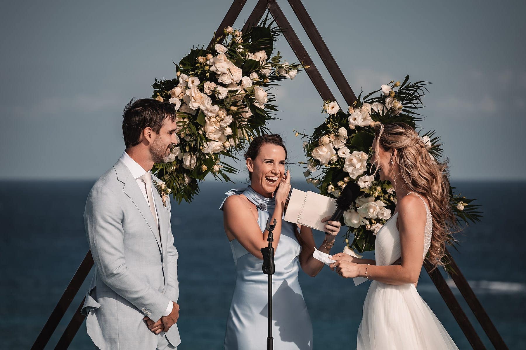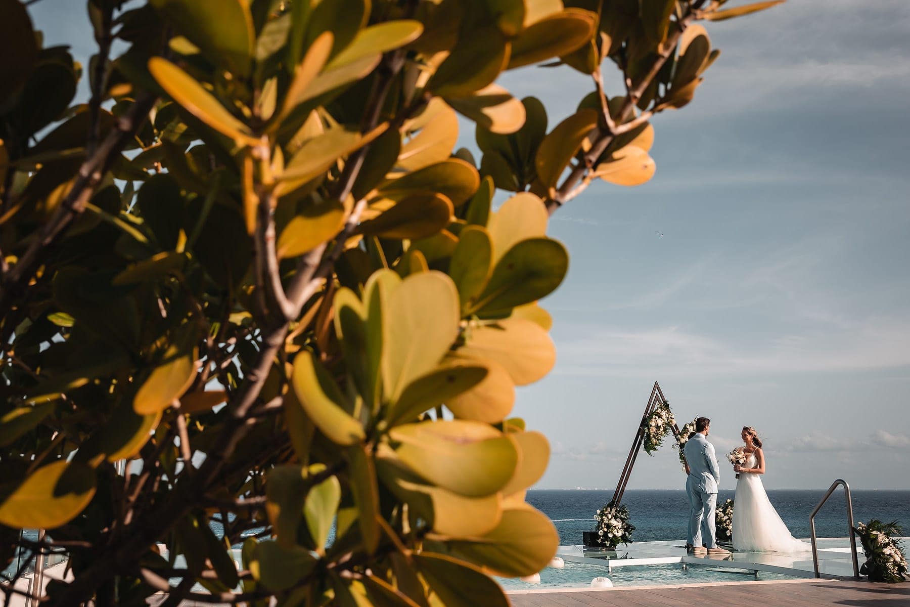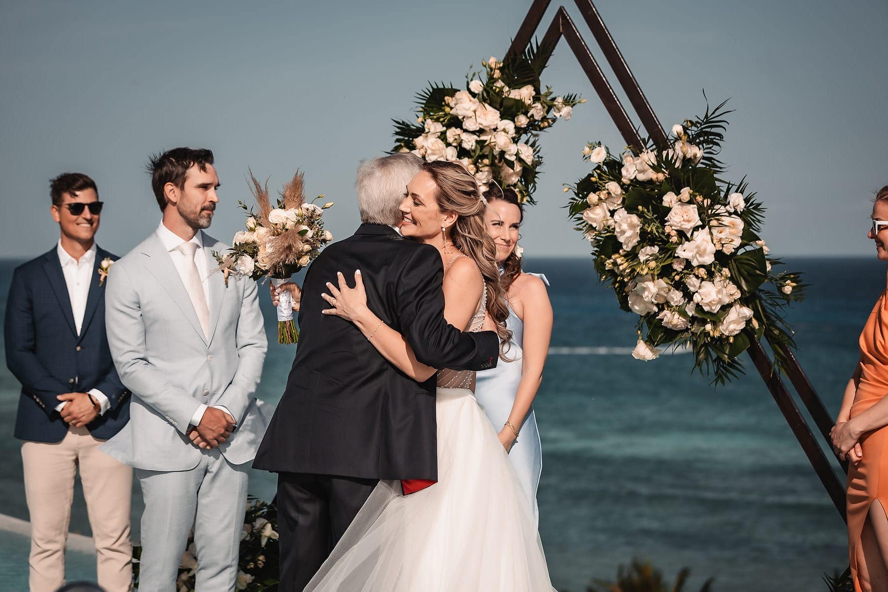 From the moment Cara arrived in her stunning gown, the atmosphere was filled with romance and anticipation. The sun reflecting on the Caribbean waters, the stylish architecture, and the infinity pool terrace created a truly spectacular stage for the ceremony.
