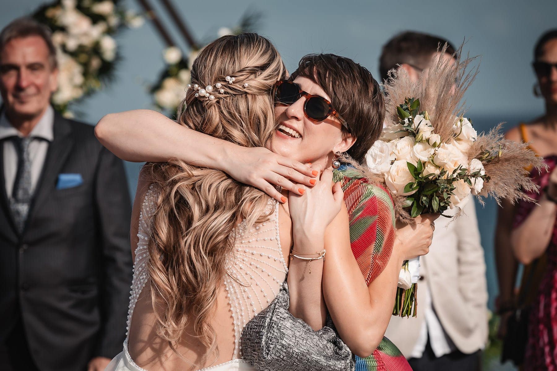 Cara and Ryan exchanged their vows on the iconic terrace with its infinity pool overlooking the turquoise Caribbean Sea. Surrounded by family and friends, they stood beneath a beautifully decorated arch of tropical flowers while the ocean horizon stretched endlessly behind them. The soft breeze, golden light, and breathtaking views made their ceremony not just intimate, but also spectacular and unique to Mvngata Hotel.