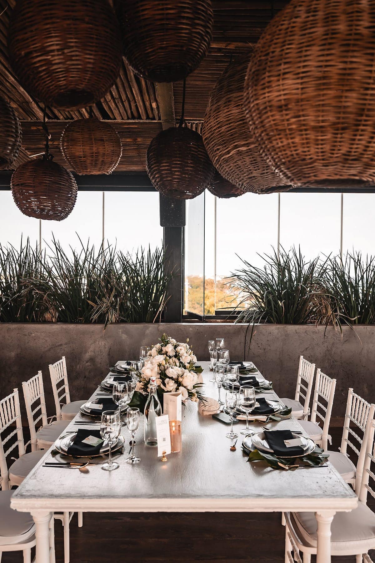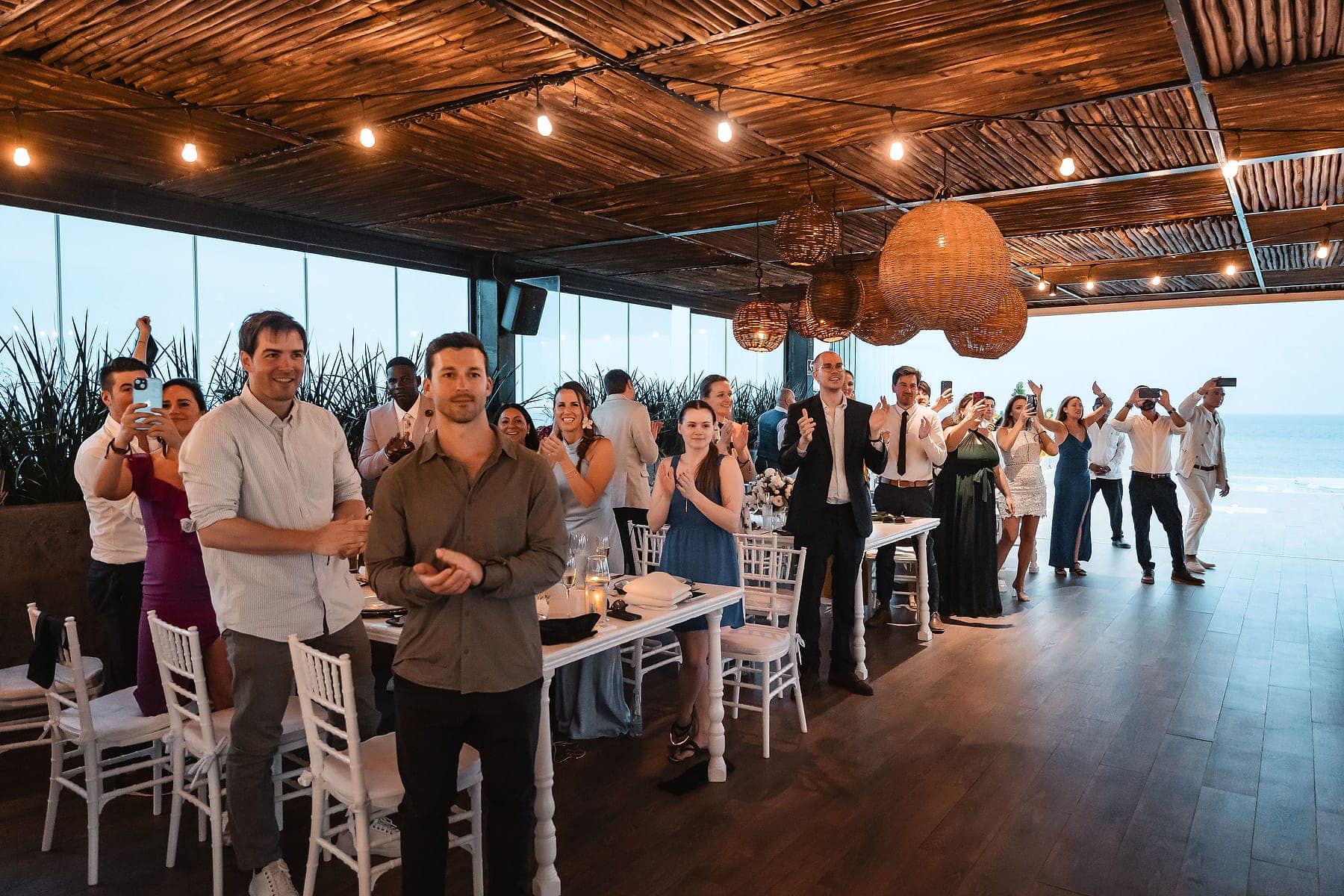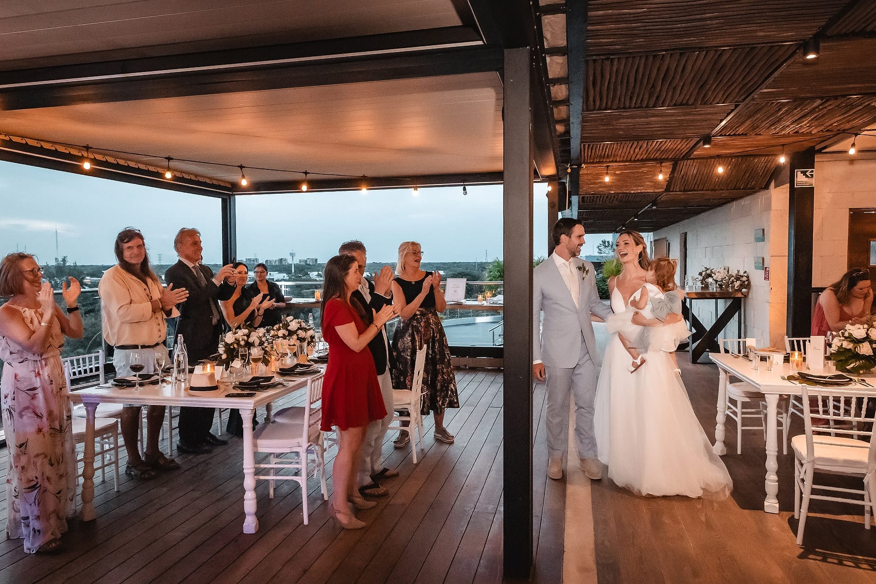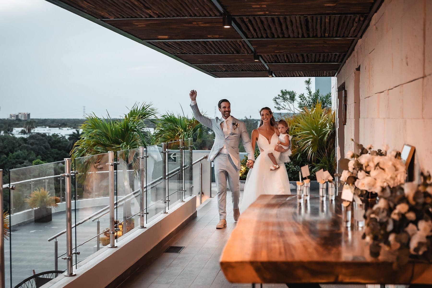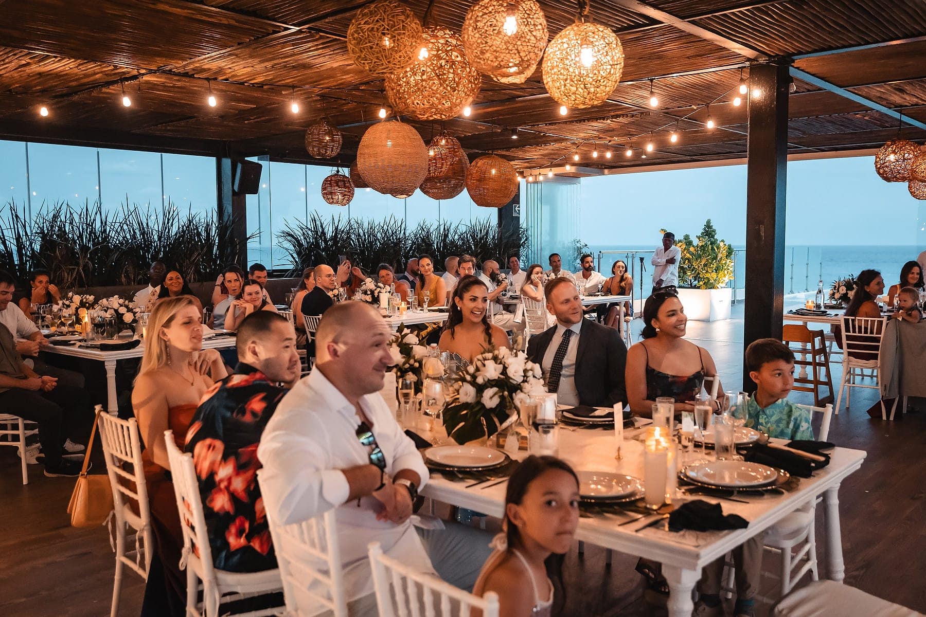 After the ceremony, the celebration continued on the rooftop of Mvngata Hotel. Elegant décor, candlelit tables, and panoramic ocean views created a refined yet lively atmosphere. Guests enjoyed gourmet dishes, heartfelt toasts, and music that filled the night with joy.