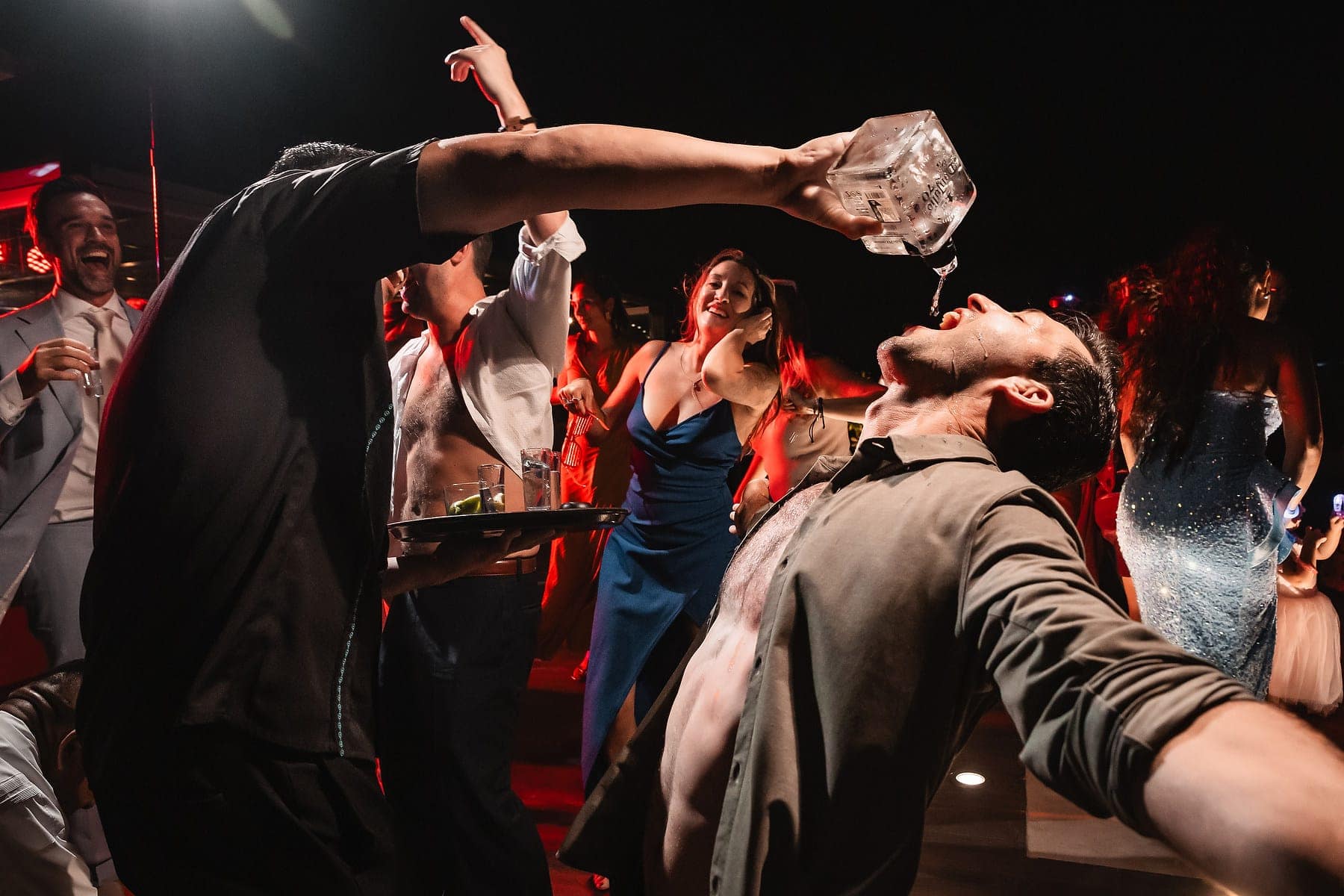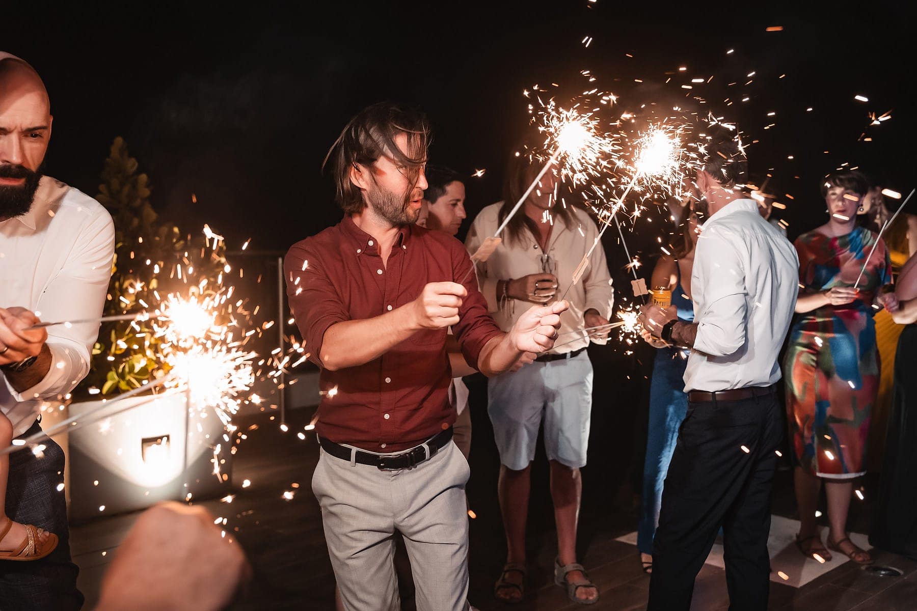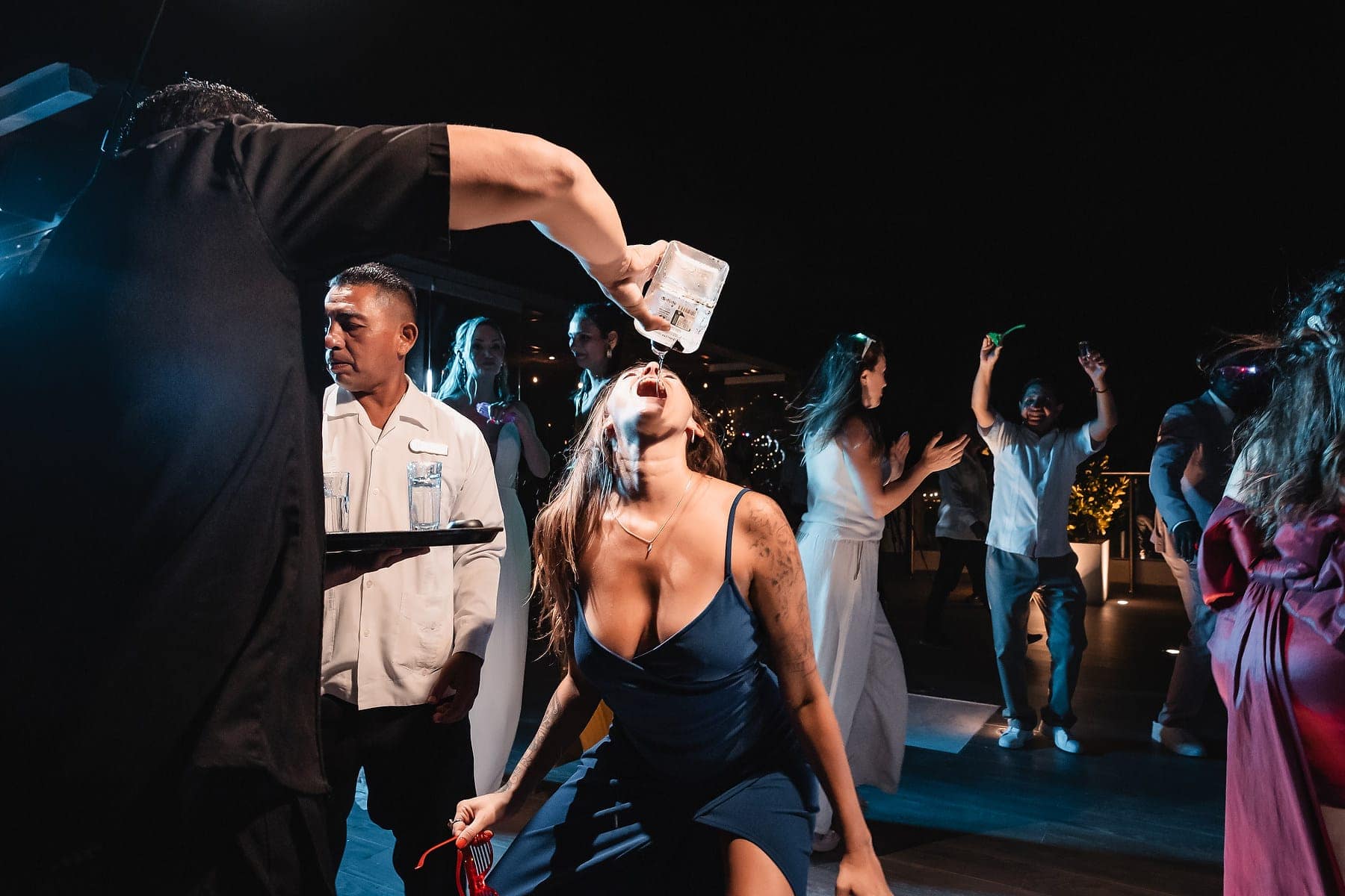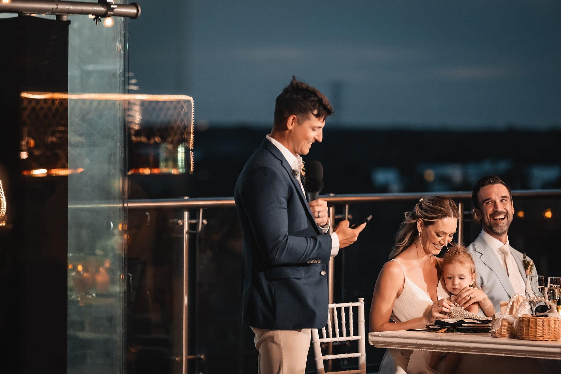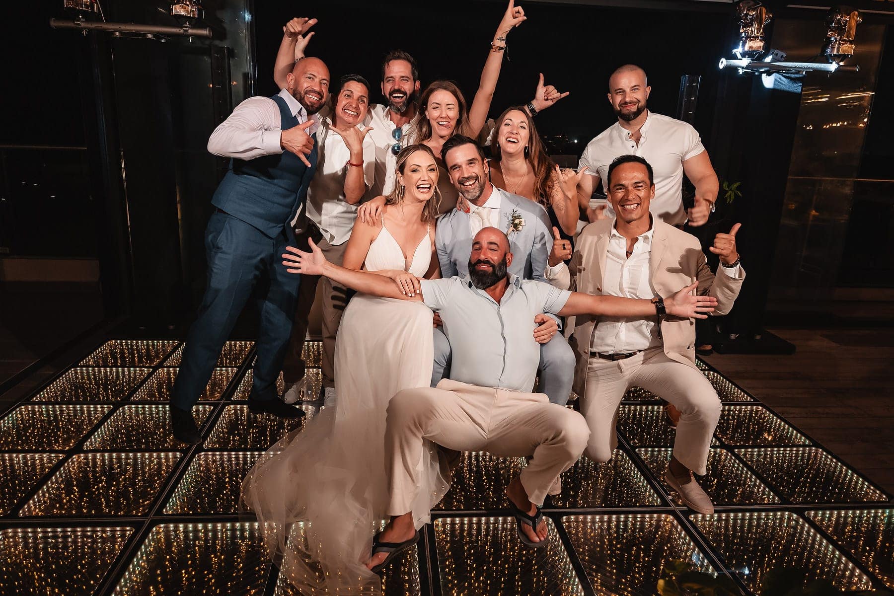 After the ceremony, the celebration continued on the rooftop of Mvngata Hotel. Elegant décor, candlelit tables, and panoramic ocean views created a refined yet lively atmosphere. Guests enjoyed gourmet dishes, heartfelt toasts, and music that filled the night with joy.